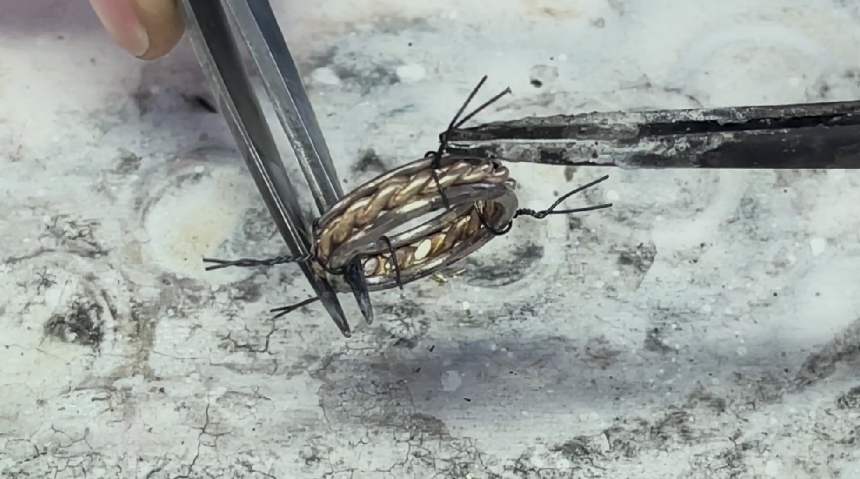 The design features a twisted yellow gold band set between two white gold bands and provides extensive soldering practice, with more than 20 solder joints involved. As she works, Mechelle highlights the key differences and similarities between yellow and white gold, including important annealing tips.